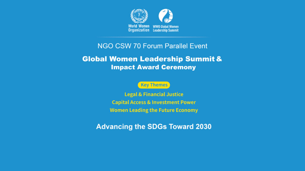 New York, March 18, 2026—the 70th United Nations Commission on the Status of Women (CSW70) successfully hold a parallel summit, the 2026 WWO Global Women’s Leadership Summit & Influence Award Ceremony, which will be grandly inaugurated at the United Nations Headquarters in New York. Hosted by the World Women Organization (UNWWO), this summit focuses on […]